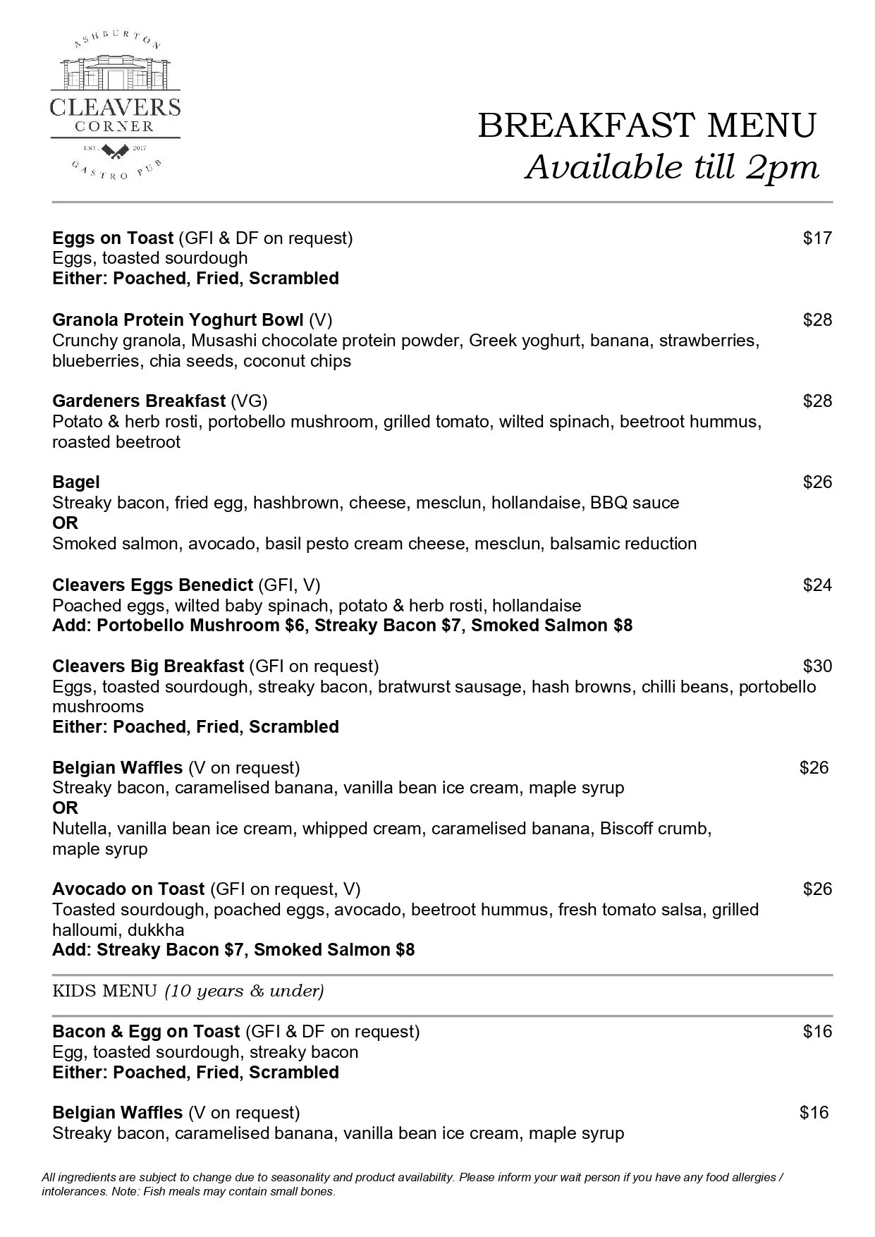 Cleavers Corner Gastro Pub specialises in high quality food, beverage and service.